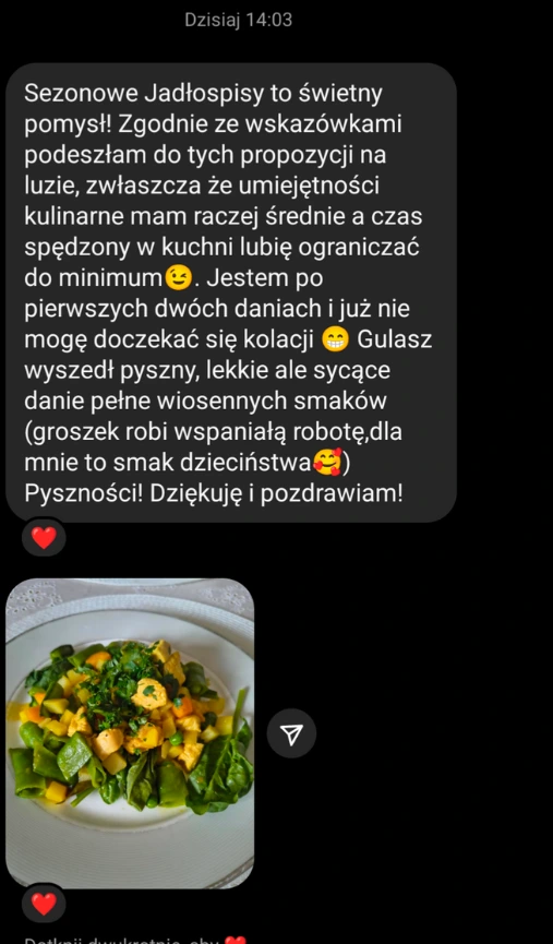 Oczywiście — to właśnie klucz Sezonowych Jadłospisów! Wszystkie produkty są dobrane zgodnie z sezonowością dla danego miesiąca. Jeżeli coś w danym regionie może nie być jeszcze dostępne, to podany jest zamiennik.