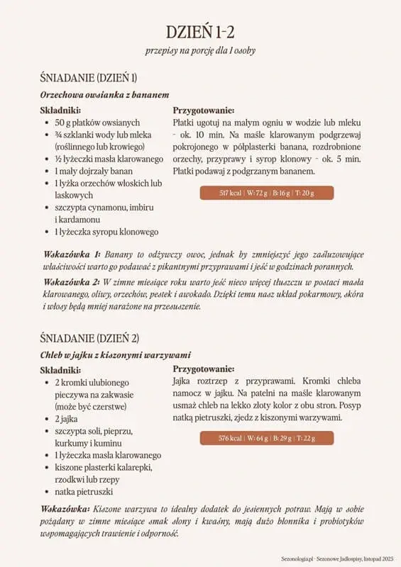 To nie tylko plan jedzenia – to zaproszenie do łagodniejszego rytmu dnia. Znajdziesz tam podpowiedzi, które regulują apetyt, trawienie i energię zgodnie z tym, czego potrzebuje ciało jesienią.